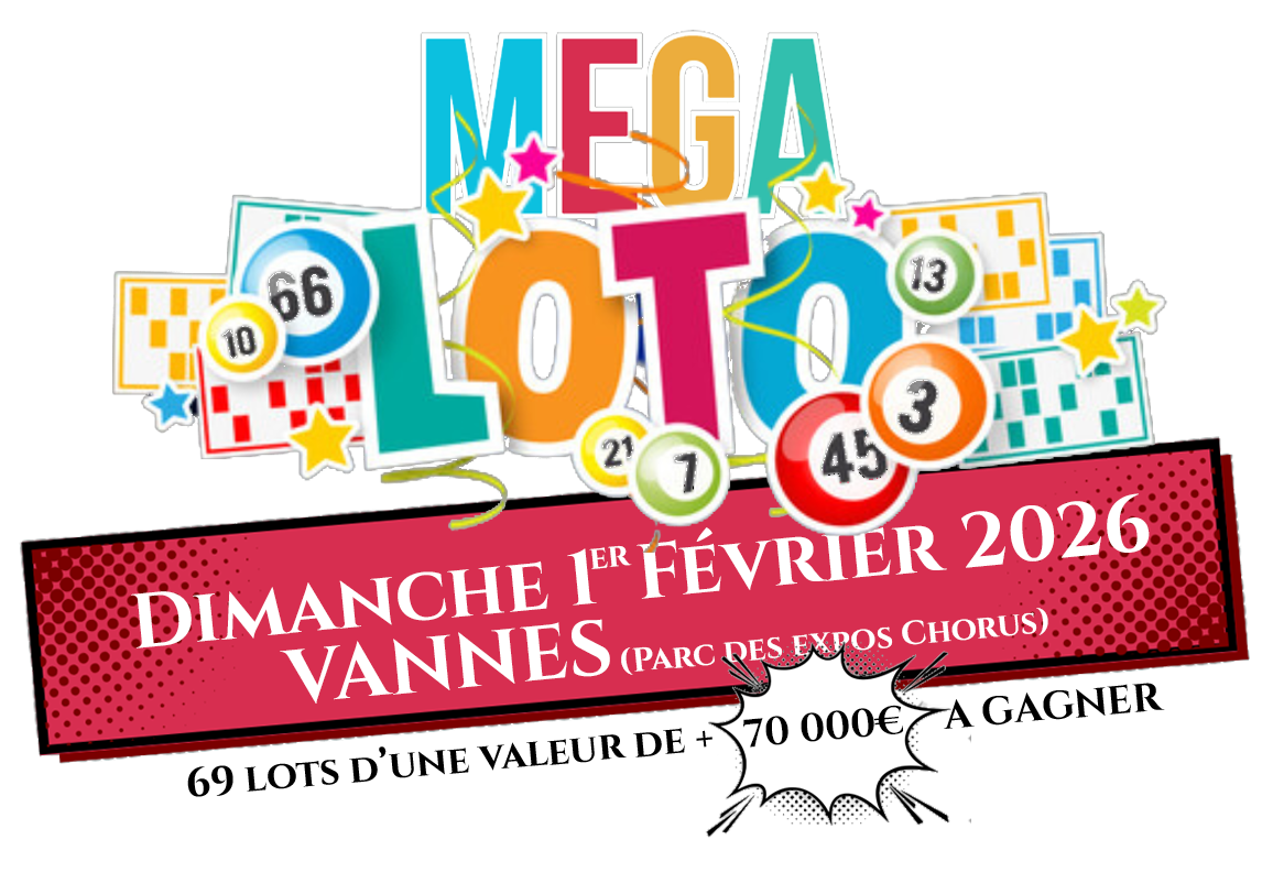Début du loto à 11h avec le lot n°70. Une pause repas est prévue vers 12h30 (durée environ 1h15) ainsi que deux entractes en cours d’après-midi. Fin du loto vers 19h00 avec le lot n°1 (voir liste des lots). Horaires de la journée 9h00 à 11h00 = accueil et vente cartes, buvette, restauration 11h00 à 12h30 = tirage dont un gros lot carton plein 12h30 à 13h45 = pause déjeuner 13h45 à 15h30 = tirage 15h30 à 16H00 = pause 16h00 à 17h30 = tirage 17h30 à 18h00 = pause 18h à 19h = tirage gros lots |
